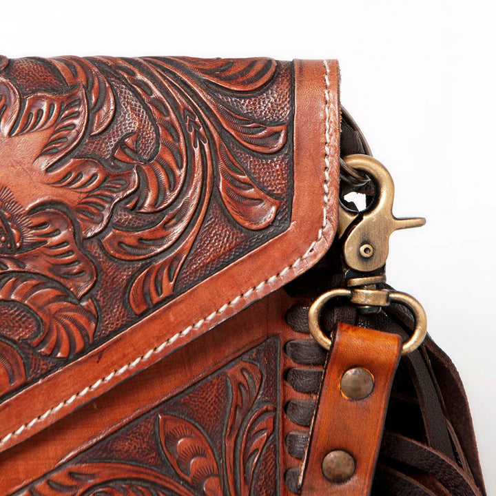 The American Darling LC-ADBG481 Brown Cowhide Envelope Crossbody Bag is a striking fusion of classic western style and artisan craftsmanship. This piece is part of our exclusive Sample Collection and is the final bag available in this design.