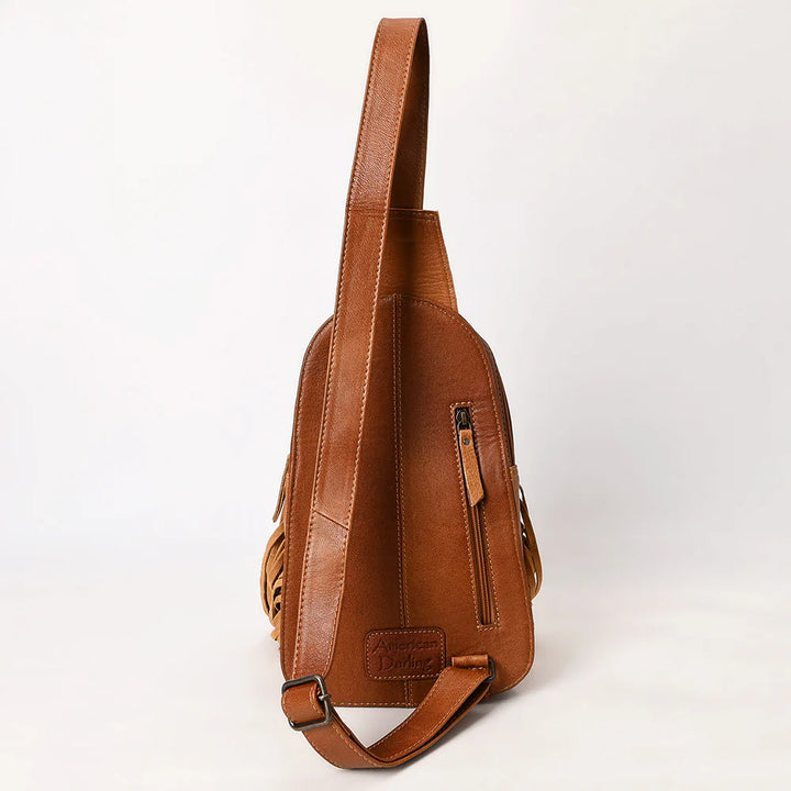Elevated Western Style – The ADBG1568A Hand-Tooled Fringe Sling Bag. Sling on bold Western beauty with the ADBG1568A – a stunning hand-tooled leather bag by American Darling, designed with a striking floral tooled pattern and intricate inlay work. Finished with long leather fringe and an adjustable sling strap, this piece captures the soul of the Southwest with modern flair.