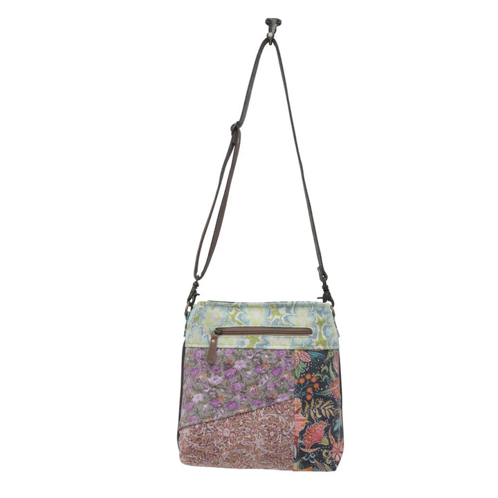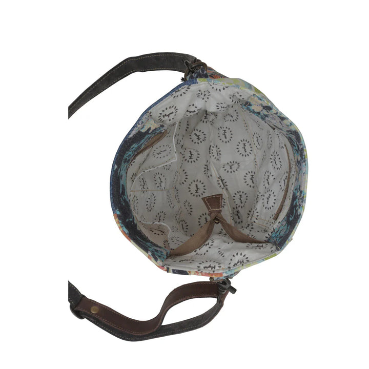 Elevate your wardrobe with the Le Fleur Blu Shoulder Bag by Myra — a refined fusion of artistry, vintage charm, and Western flair. Crafted from upcycled canvas with genuine leather trim and a striking floral‑print cotton overlay, this statement shoulder bag exudes elegance in every stitch.