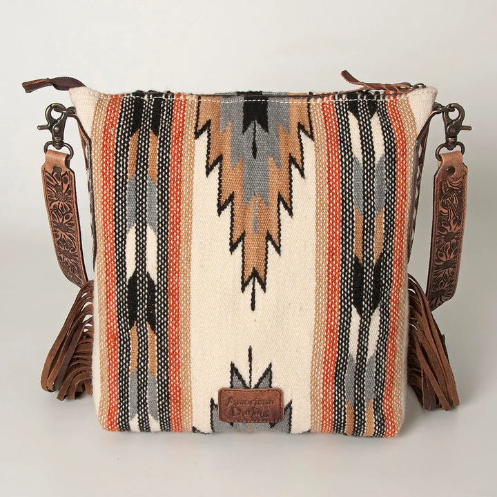 A meticulously hand-woven wool saddle blanket, giving it a Western traditional yet trendy and elegant look.